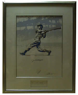 Description: This is a Carlo Bertinati Seriagraph of Joe DiMaggio...one of the rare and famous autographed pieces of the "Yankee Clipper". Nicely custom framed, and truly a tough piece! Signed: Blue Sharpie Approximate Size: 24 x 30 (Framed) Price: $3000. Back to the Memorabilia Page..