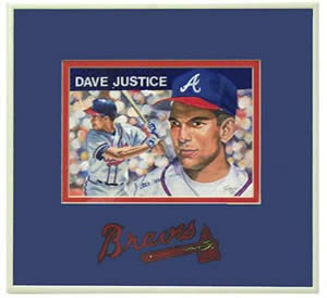 Description: Small painting by Upper Deck's Michael Jordan jersey painter, artist Jolene Jessie, depicting David Justice. Justice signed this small painting, and it is custom framed. Signed: Blue Sharpie Approximate Size: 8 X 10 Price: SOLD! Back to the Memorabilia Page... |
