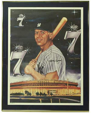 Description: Robert Stephen Simons limited edition Lithograph, signed by both Mickey Mantle & artist. Custom framed and matted. Signed: Black Sharpie (Artist in Pencil) Approximate Size: print 20 by 24 Price: $1495 Back to the Memorabilia Page... |