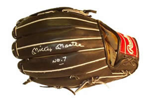 Description: Mickey was a Rawlings glove user, and this is a black Rawlings glove, signed, "Mickey Mantle, No. 7". Signed: Silver Paint Pen Approximate Size: Standard Price: Not for Sale! This one is mine. Back to the Memorabilia Page... |