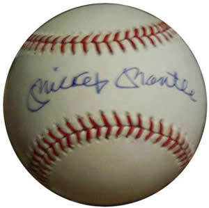 Description: Mickey Mantle autographed baseball. This is a Bobby Brown "Haiti" ball, signed on the sweet spot. These old Haiti balls are great because they rarely have ever shown up as forgeries. There ARE some regular Bobby Brown forgeries and certainly Gene Budig forgeries. But "Haiti" and "Costa Rica" Bobby Brown baseballs were issued when Mick's autograph was so cheap, they weren't forged NEARLY as much! Therefore, in addition to getting the ball from me, with the protection THAT offers, it is a more sellable item later, due to the age of the ball. Similarly, Lee McPhail balls are even more valuable. I have several of these left. The balls are a lot cleared than this blurred photo implies. The signatures are clean and not bleeding, as the blurring on this photo might make you think. Signed: Blue Ballpoint Pen Approximate Size: Standard Price: $525 Back to the Memorabilia Page... |