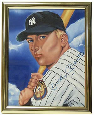 Description: Original painting by 1992 Sports Artist of the Year, Robert Stephen Simons, autographed by Mickey Mantle ON THE ARTWORK! Signed: Blue Sharpie Approximate Size: 11 X 14 Price: $3295 Back to the Memorabilia Page... |