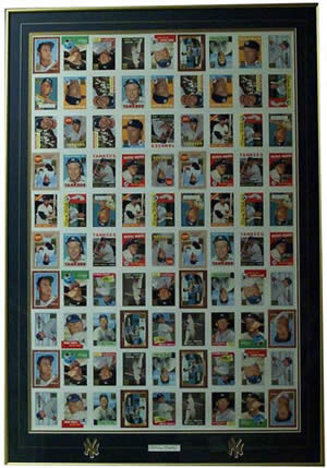 Description: This uncut sheet of Topps Cards (reprints) features a number of each card (several sets worth). This was a rare sheet, given by Topps to its large distributors, and never sold or offered to the public. Framed with this sheet is a nice, boldy-signed Mickey Mantle autograph on a cut at the bottom of the piece. Custom framed with double mattes, and Yankees logos hand-carved into the outer matte. This is a rare, striking piece for any Mantle fan! Signed: Black Sharpie Approximate Size: 31 X 45 (Framed) Price: SOLD! Back to the Memorabilia Page... |
