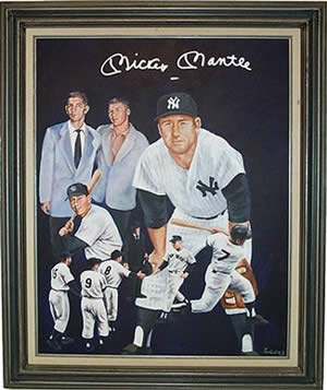 Description: Multiple image original art work showing Mickey with his friend, Billy Martin. This piece is autographed (by Mantle only) ON THE ARTWORK! Signed: Silver Paint Pen Approximate Size: 24 X 30 Price: $6500 Back to the Memorabilia Page... |