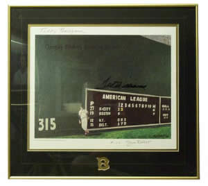 Description: Ted Williams print, called "Teddy ballgame". Autographed by Ted and artist, and nicely custom framed. Signed: Blue Sharpie Approximate Size: 16 X 20 Price: $395 Back to the Memorabilia Page... |